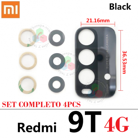 Xiaomi Redmi 9T 4G 2021 J19S - CRISTAL LENTE DE CAMARA SET 4PCS - NEGRO