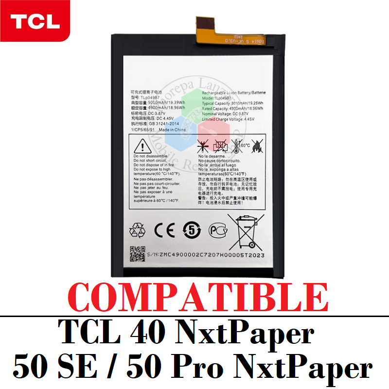 TCL 40 NXTPAPER (T612B) / TCL 50 SE (T611B) / TCL 50 Pro NxtPaper (T803E ) TLP049DA / TLP049D9 - BATERIA COMPATIBLE SIN LOGO